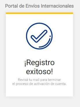 Cuando hayas completado todo los datos, te avisarán que te enviaron un correo electrónico a tu casilla de email para confirmar la creación de la cuenta: