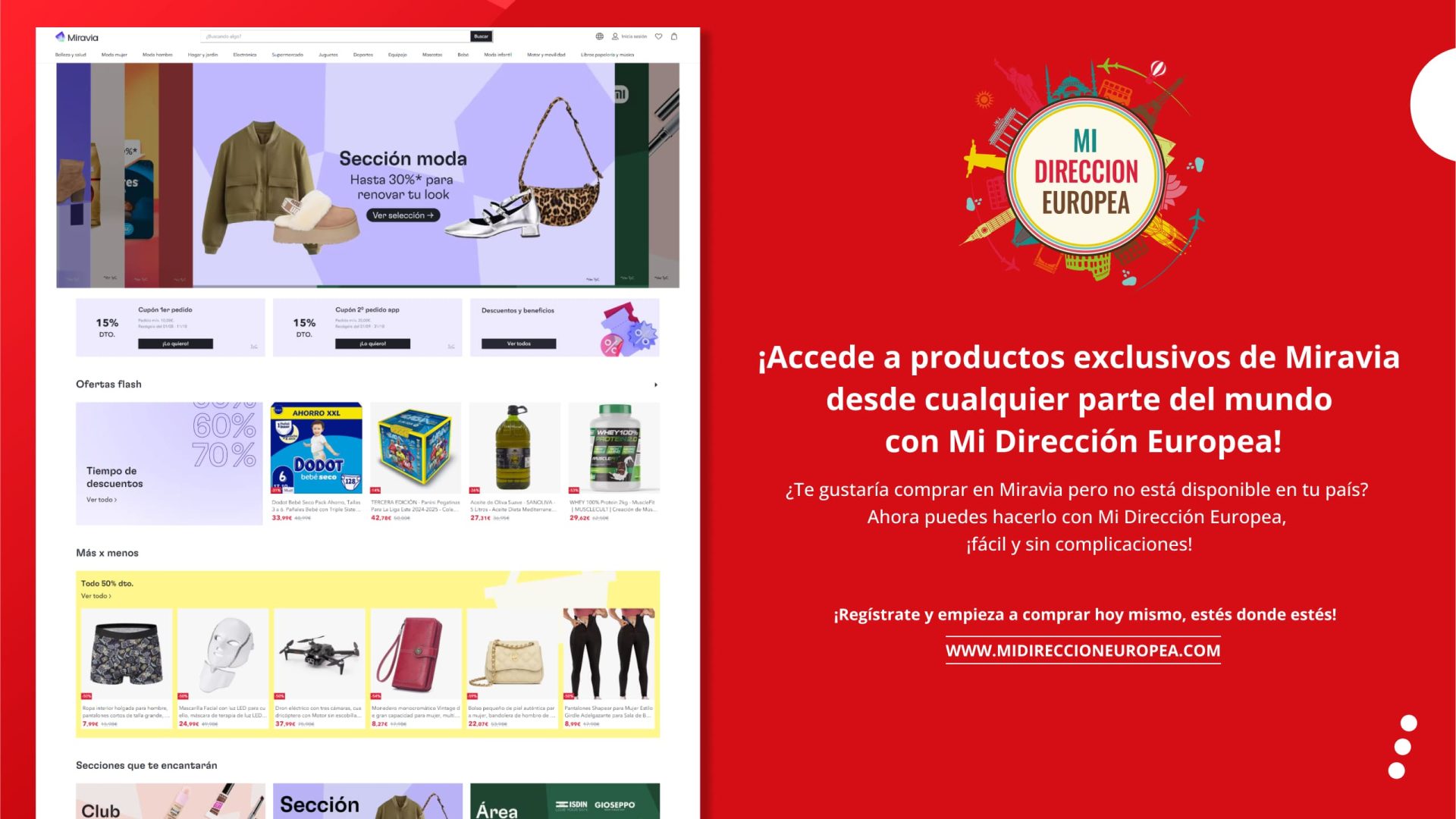- Acceso a Miravia desde Cualquier Parte del Mundo: Con Mi Dirección Europea, puedes comprar en Miravia y otras tiendas europeas que normalmente solo realizan envíos dentro de Europa. ¡Sin limitaciones geográficas!